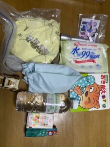 中身は着替え お水 おもちゃ 本 紙おむつetcです。