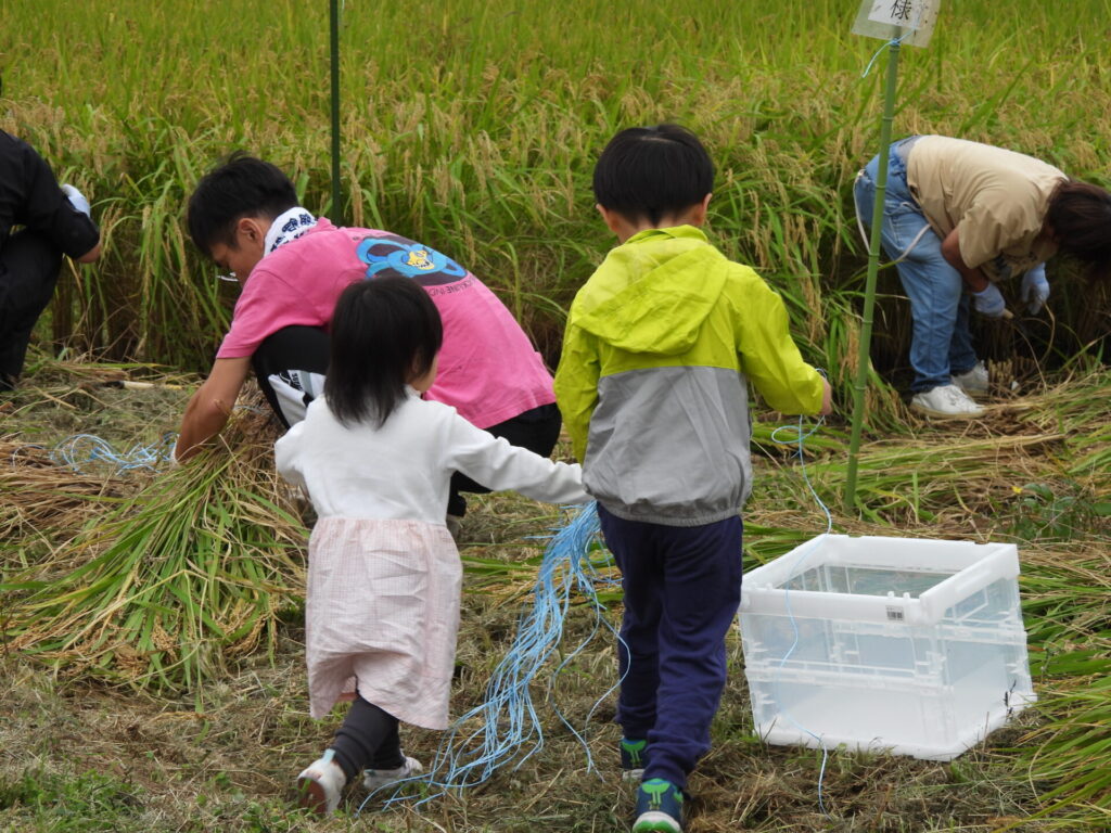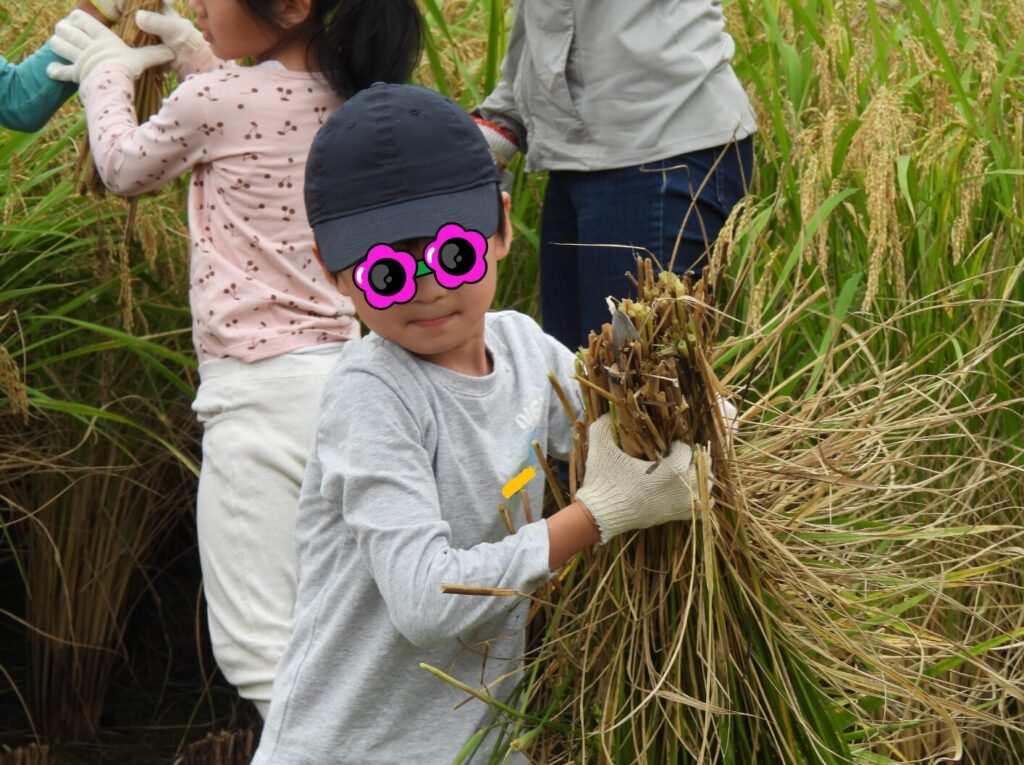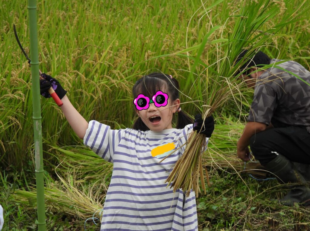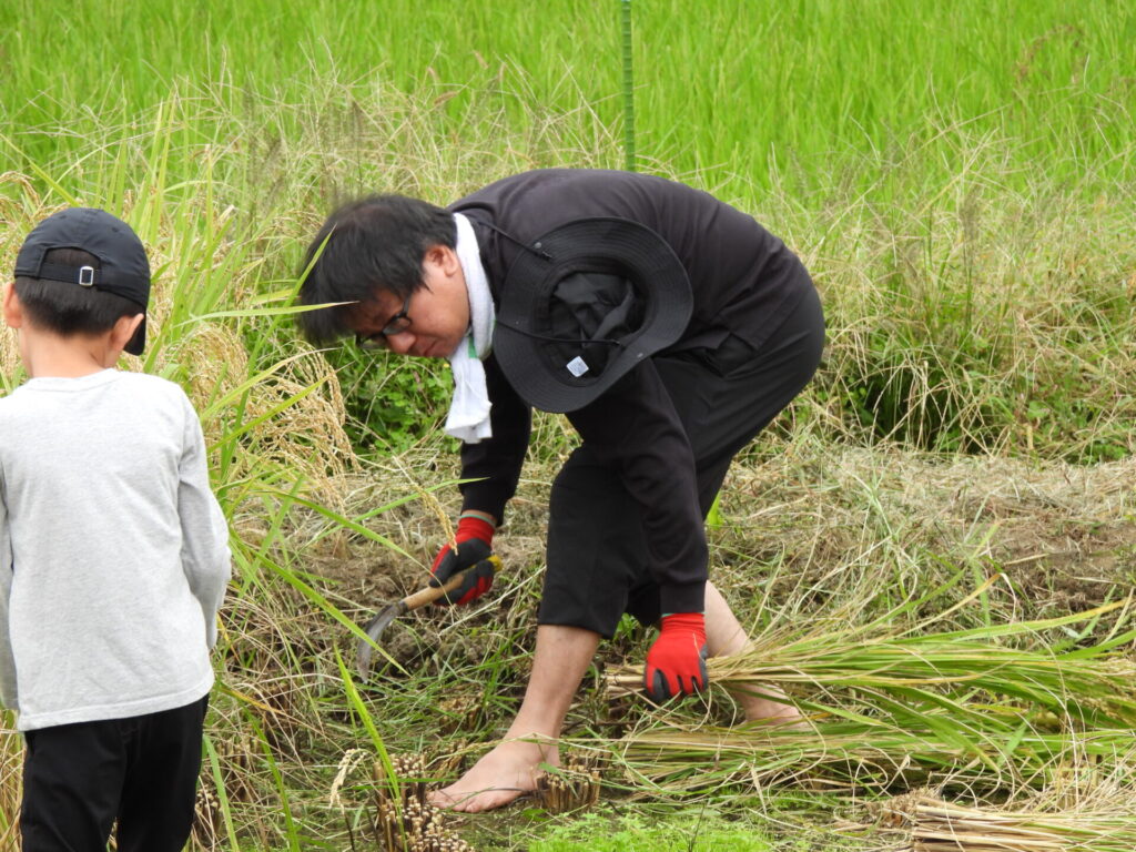大人たちはヘトヘトになりながら、無事稲刈りは終了パンチ