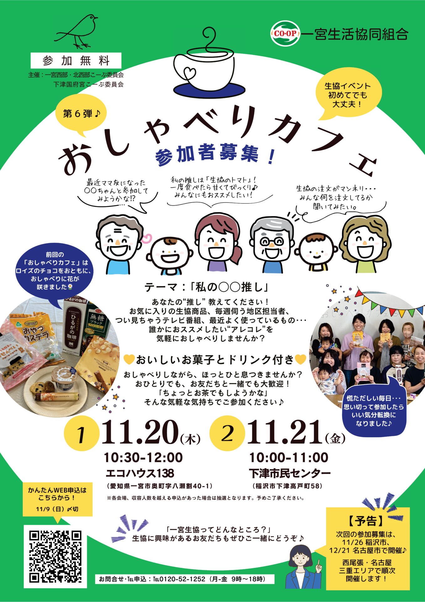 11月20・21日「コープdeおしゃべりカフェ(一宮市奥町・稲沢市下津)」