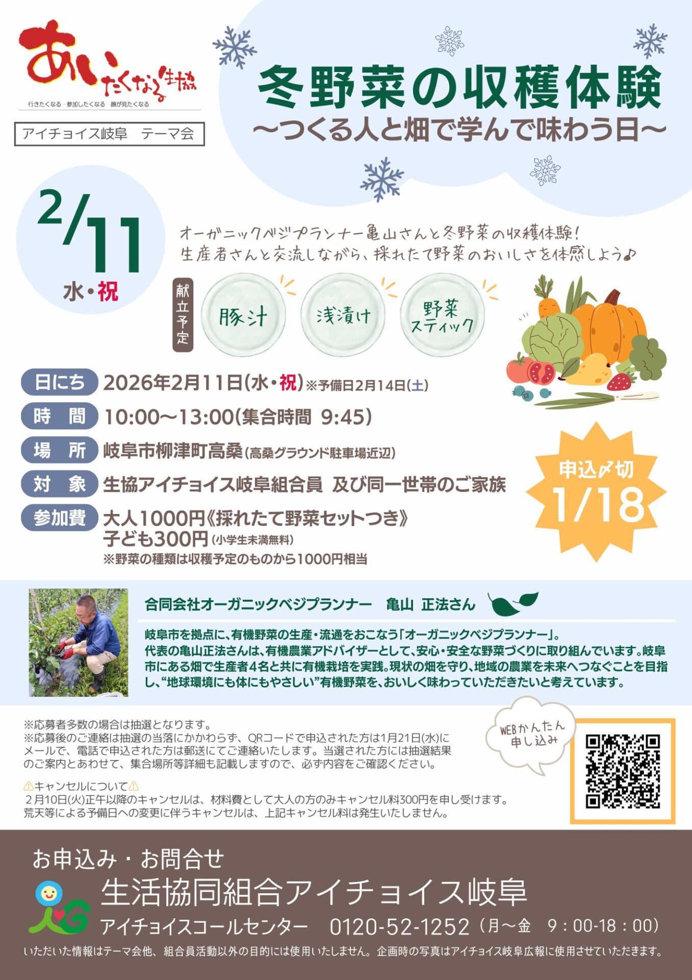 “冬野菜の収穫体験”開催のお知らせ…2025年10月13日