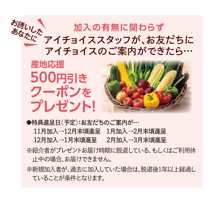 11月加入→1月末頃お届け 1月加入→3月末頃お届け